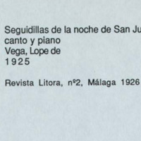 Gustavo Durán y Lope de Vega, «Seguidillas de la noche de San Juan», en Litoral, núm. 2, Málaga, diciembre de 1926.
